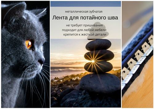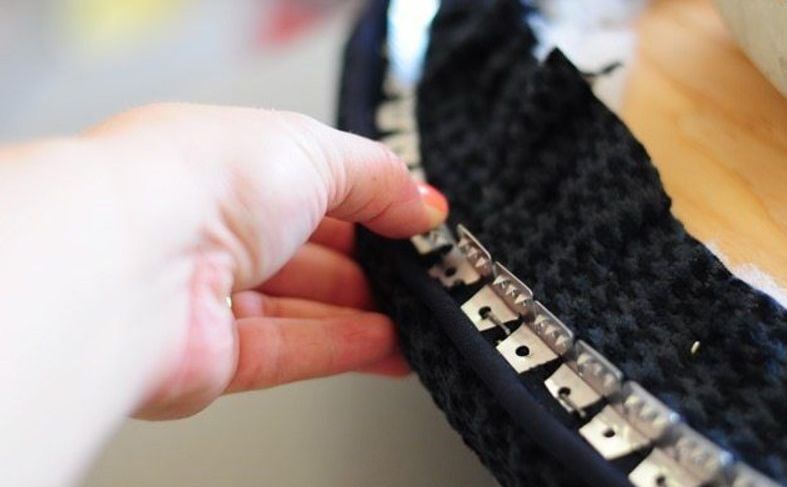 Выход есть – использование ленты для потайного шва. Это металлическая зубчатая конструкция крепится к жесткой детали, а затем на нее натягивается материал. В дальнейшем зубчики зажимаются и материал плотно закрепляется без видимого соединения.